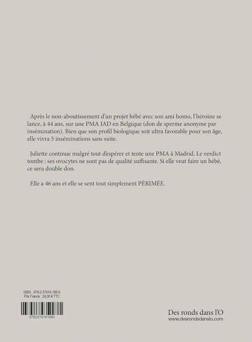 Début d’épidémie de COVID, la France commence à compter ses morts. Juliette, 46 ans, a besoin de se retrouver seule quelques jours. Ce fût, à sa grande joie, des semaines. Elle vient de recevoir un mail de la clinique espagnole qui lui annonce que l’embryon qu’elle attendait n’est pas transférable. Il présentait des anomalies chromosomiques multiples. Si elle a une réserve ovarienne impressionnante pour son âge, qu’elle réagit très bien à la stimulation, que les médecins ont pu ponctionner 10 follicules, hélas leur qualité est celle d’une femme de 46 ans… La FIV est annulée et il n’y a plus aucune possibilité avec ses propres ovocytes. Quel échec pour Juliette ! Où dans sa vie a-t-elle merdé pour en arriver là ? Embryon mort-né avant même l’implantation, elle se sent périmée. Il n’y a plus aucun sens de continuer cette vie là comme ça. Elle est sidérée, pétrifiée, les larmes ne sortent même pas.