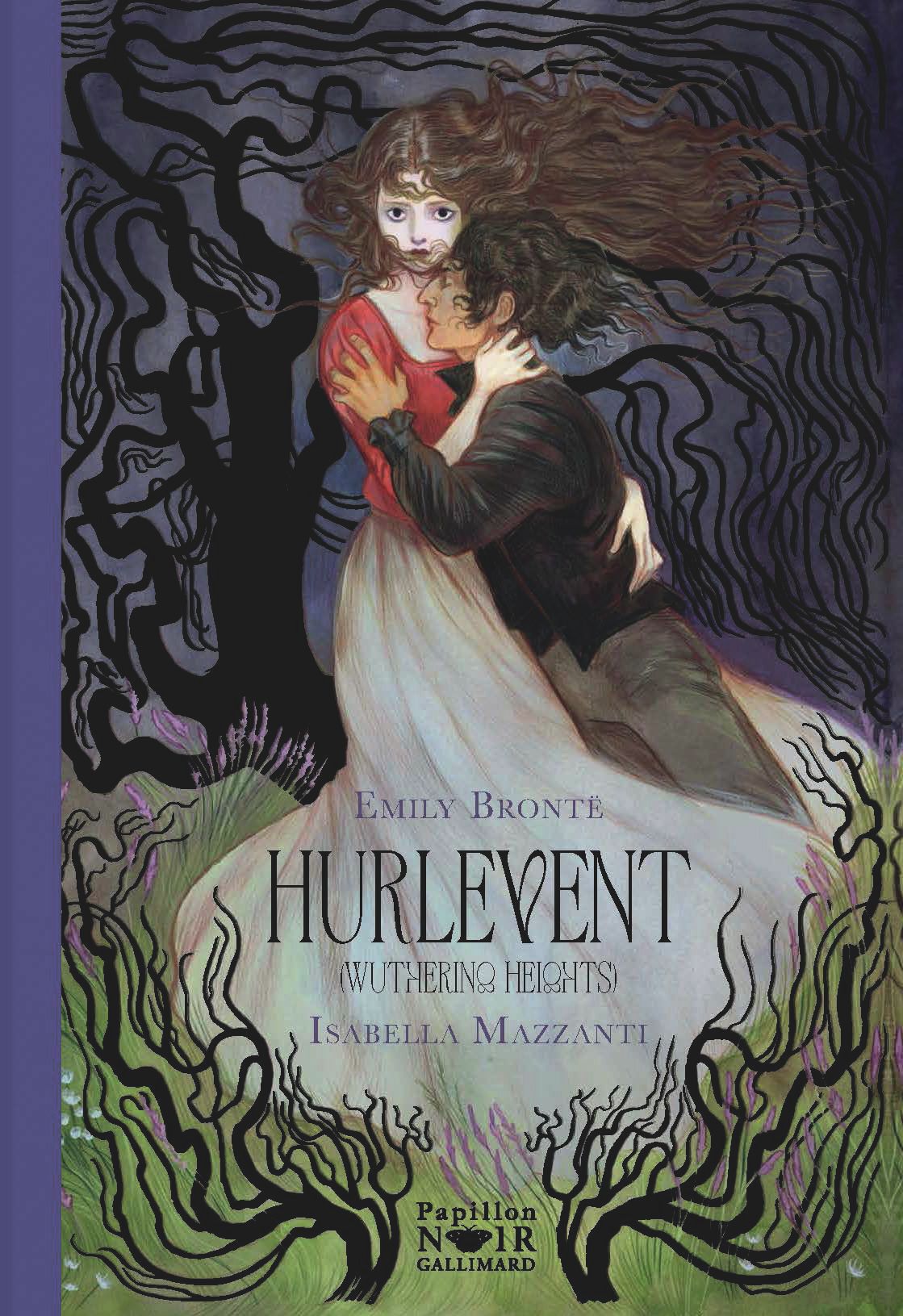 Wuthering heights, ou Hurlevent en français, est l'un des textes les plus célèbres des sœurs Brönte, ou plus précisément d'Emily Brönte. Devenu un classique de la littérature anglaise, il ne cesse de fasciner et a été souvent adapté : comédies musicales, ballets, pièces de théâtre, films... C'est un imaginaire artistique encore très ancré et toujours très inspirant pour les artistes. Isabella Mazzanti, illustratrice italo-polonaise donne son propre point de vue sur ce roman inclassable, à travers ses illustrations. Elle utilise l'aquarelle pour saisir l'importance de la nature, pour exprimer une violence émotionnelle et mettre au centre les émotions à fleur de peau des personnages. Elle utilise aussi le dessin, avec des traits plus prononcés et marqués, plus durs, pour parsemer le roman. De manière récurrente, les traits semblent jetés, vivants, en mouvement. La numérotation des chapitres est annoncée par une illustration encadrant par des fleurs de la lande, des plantes piquantes et un papillon noir (associé à la fois au nom de la collection). Parfois, l'illustratrice utilise un découpage propre à la bande dessinée pour mettre en scène ses personnages et retranscrire une action. Un très beau roman illustré, avec un joli dos toilé et des reflets holographiques sur la couverture, à l'image du caractère imprévisible de Wuthering heights.