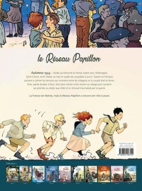 Avec ce 11e tome, les auteurs Franck Dumanche, Michel-Yves Schmitt accompagnés par le dessinateur Nicolas Otéro se rapprochent inexorablement de la fin de la seconde guerre mondiale. Les protagonistes du Réseau Papillon ne font maintenant plus leur boulot de résistants contre les forces allemandes, mais néanmoins les choses ne sont plus si simples depuis le débarquement des alliés. On assiste dans le village de Saint Céneri à un acharnement injustifié sur certaines personnes par les villageois et à des règlements de compte trop faciles. Les auteurs montrent ici le moment de bascule entre le départ de l’occupant et la reprise en main du pouvoir français. On suit aussi le parcours d'Edmond qui, devenu pilote de la RAF, ne pense qu’à une chose : se rendre en Pologne pour retrouver ses parents déportés dans le camp tristement célèbre d'Auschwitz. On reste donc dans un récit ou l’action reste le moteur et dans lequel les protagonistes comme Elise, Gaston, Edmond et les autres n’en ont pas encore fini avec la guerre. Ce récit jeunesse sur la seconde guerre mondiale permet aux plus jeunes d'appréhender de façon ludique cette époque sensible de l'Histoire de France.