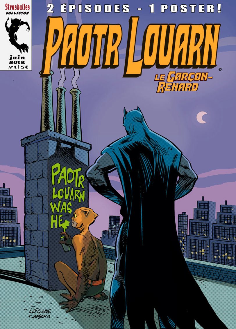 Les amateurs de bande dessinée franco-belge ont découvert les talents de Laurent Lefeuvre avec l'album Tom et William, paru aux éditions Dupuis. Cela fait quelques années que cet artiste breton, en grand fan de super héros, a dans l'idée de lancer les aventures d'un justicier armoricain. C'est ainsi que débarque dans la revue Louarnig le Garçon-Renard, alias Paotr Louarn dans le dialecte. L'histoire est écrite conjointement par Alain Chevrel et Laurent Lefeuvre. Celle-ci revient sur les débuts du personnage, de l'acquisition de ses pouvoirs à sa première virée nocturne. A la façon des comics des années 60-70, les auteurs multiplient les références au genre avec un plaisir communicatif. En plus, la partie visuelle est loin d'être expédiée. Les dessins de Lefeuvre sont soignés et certaines planches sont même très réussies. On notera de jolis clins d’œil au Spirit ou encore à Swamp Thing. La couverture bénéficie quant à elle de l'encrage d'une légende du comics, à savoir Klaus Janson, artiste attitré d'un John Romita Jr ces dernières années, entre autres. N'hésitez pas à découvrir les aventures de ce héros 100% breizh, car celles-ci valent assurément le détour. En plus, vous pourrez découvrir prochainement Paotr Louarn chez les éditions Delcourt sous le nom Fox Boy dès la rentrée prochaine. A la revoyure !